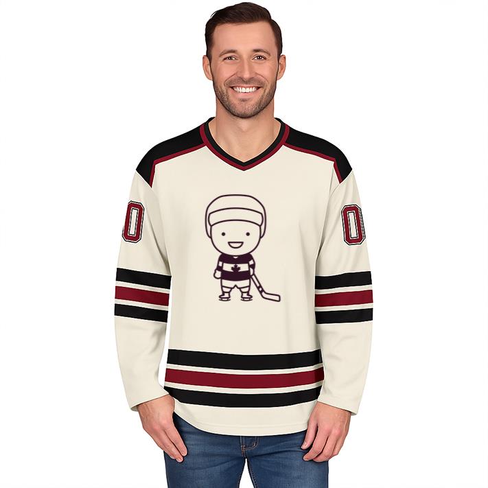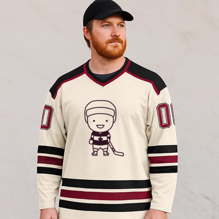 Cute Canadian Hockey Player Character Stroke Hockey Jersey Hockey Jersey – Classic Team-Style Long-Sleeve Jersey with Breathable Fabric and Athletic Fit