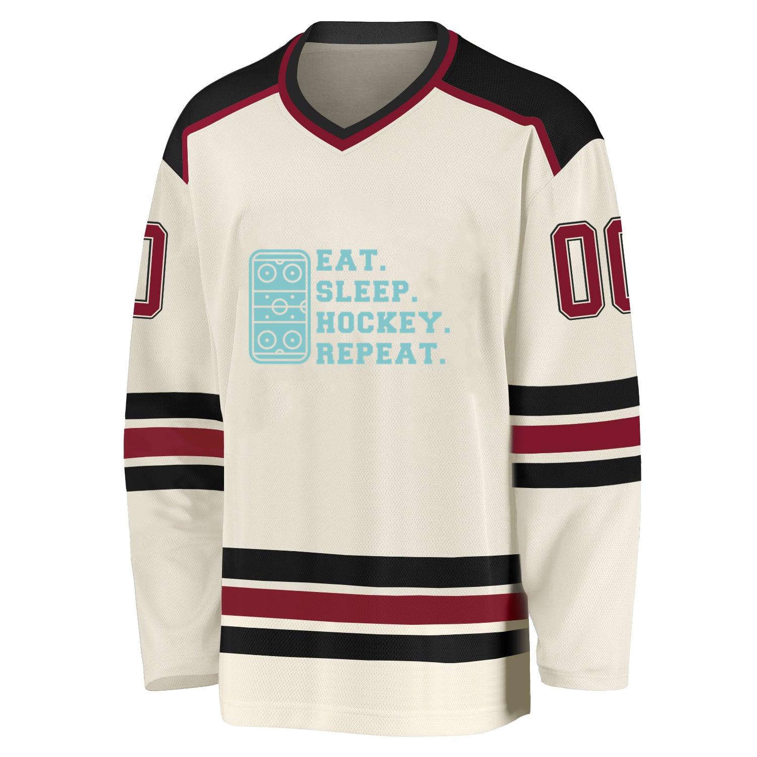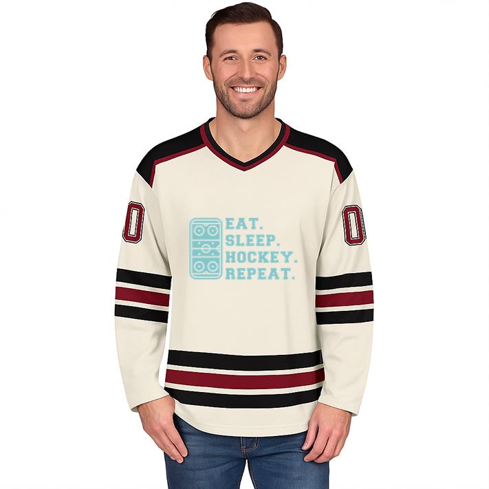 Eat Sleep Hockey Repeat Quote Cut Out Hockey Jersey Hockey Jersey – Classic Team-Style Long-Sleeve Jersey with Breathable Fabric and Athletic Fit