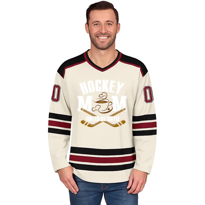 Hockey Fueled By Coffee Hockey Jersey Hockey Jersey – Classic Team-Style Long-Sleeve Jersey with Breathable Fabric and Athletic Fit