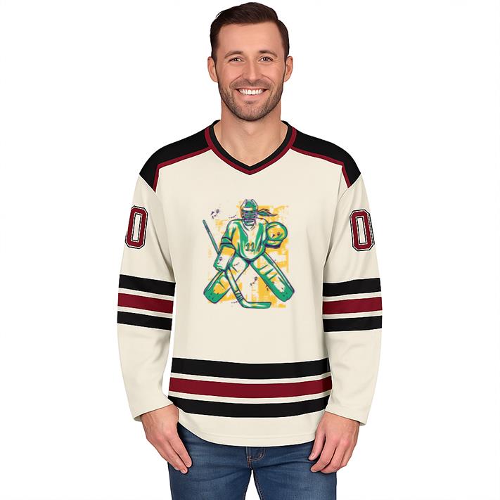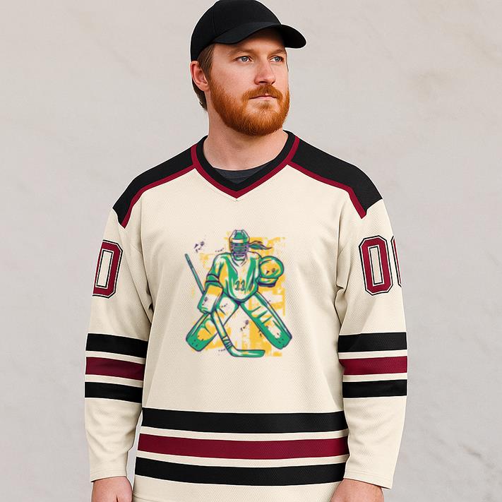 Our Hockey Goalie Holding A Stick Hockey Jersey Hockey Jersey captures the authentic look and feel of classic rink uniforms while offering everyday comfort and style. Made from a durable polyester mesh blend, this jersey is lightweight, breathable, and designed for unrestricted movement — ideal for both athletes and fans alike.