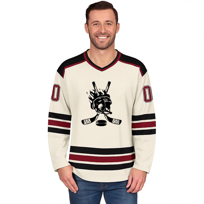 Hockey Helmet On Fire And Sticks Badge Hockey Jersey Hockey Jersey – Classic Team-Style Long-Sleeve Jersey with Breathable Fabric and Athletic Fit