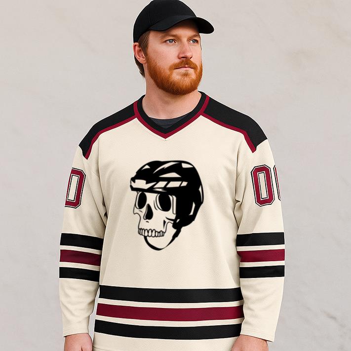 Bring the arena energy wherever you go with our Hockey Helmet Skull High Contrast Hockey Jersey Hockey Jersey. Designed with a breathable athletic fit, durable stitching, and classic team-style details, this jersey offers both comfort and performance for sports or everyday wear.