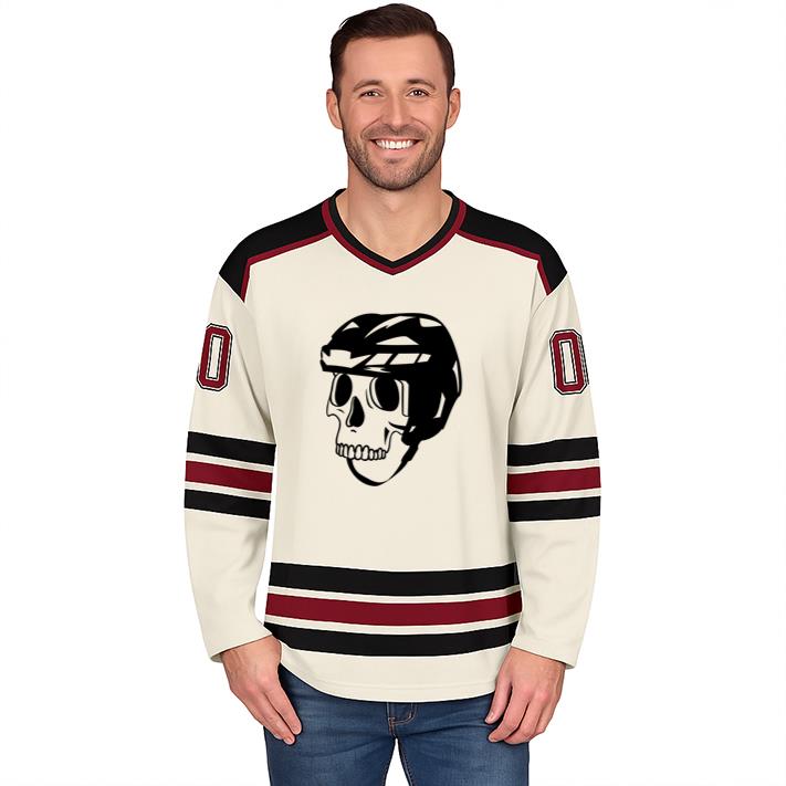 Our Hockey Helmet Skull High Contrast Hockey Jersey Hockey Jersey captures the authentic look and feel of classic rink uniforms while offering everyday comfort and style. Made from a durable polyester mesh blend, this jersey is lightweight, breathable, and designed for unrestricted movement — ideal for both athletes and fans alike.